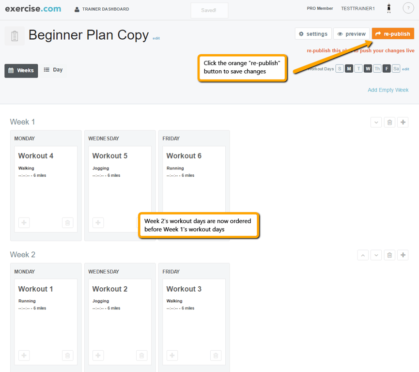 Now you can reorder the weeks of your workout plan! Step-by-step instructions are below.