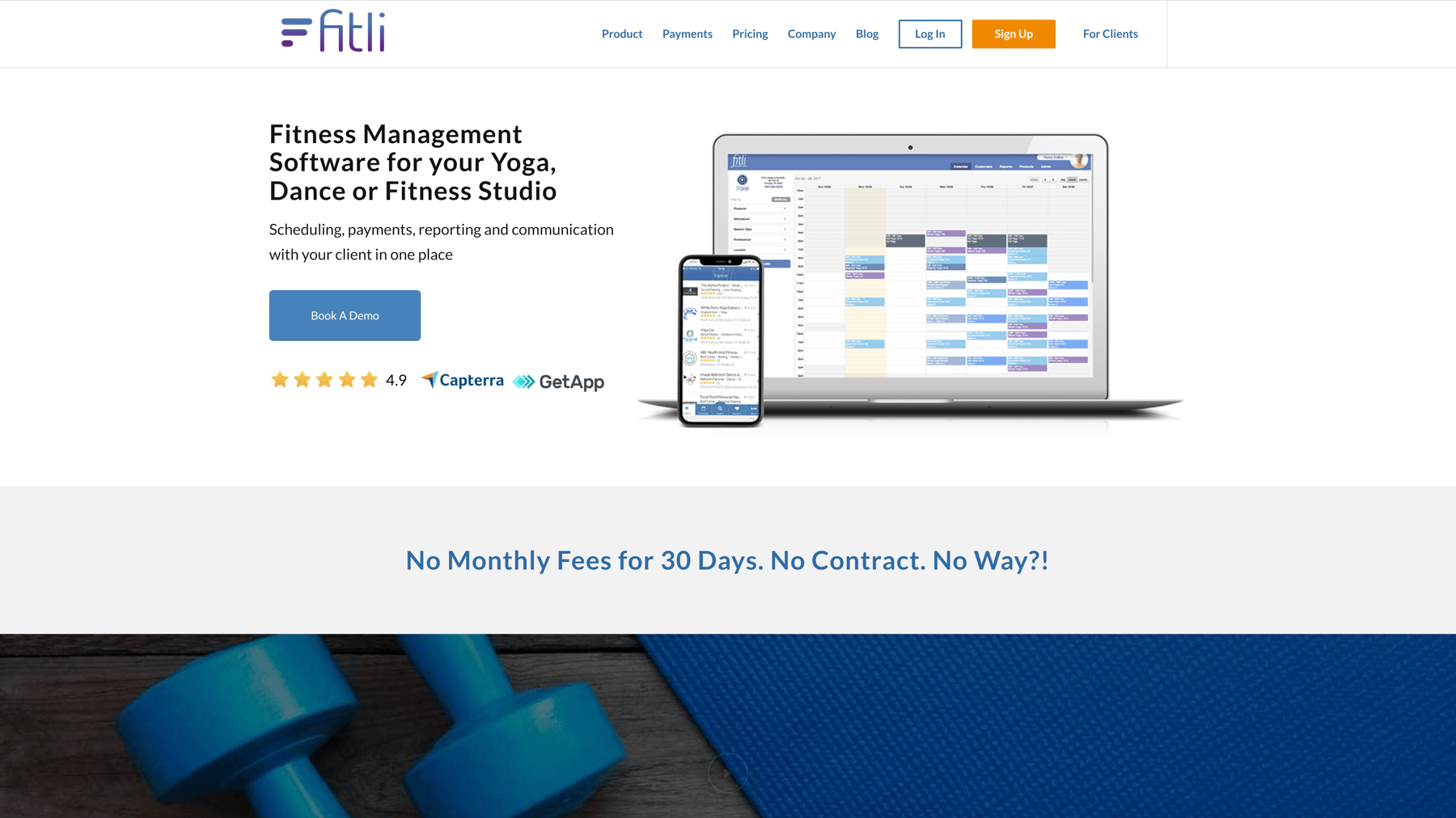 Fitli provides online booking, client management, and payment processing services along with some marketing and reporting tools.