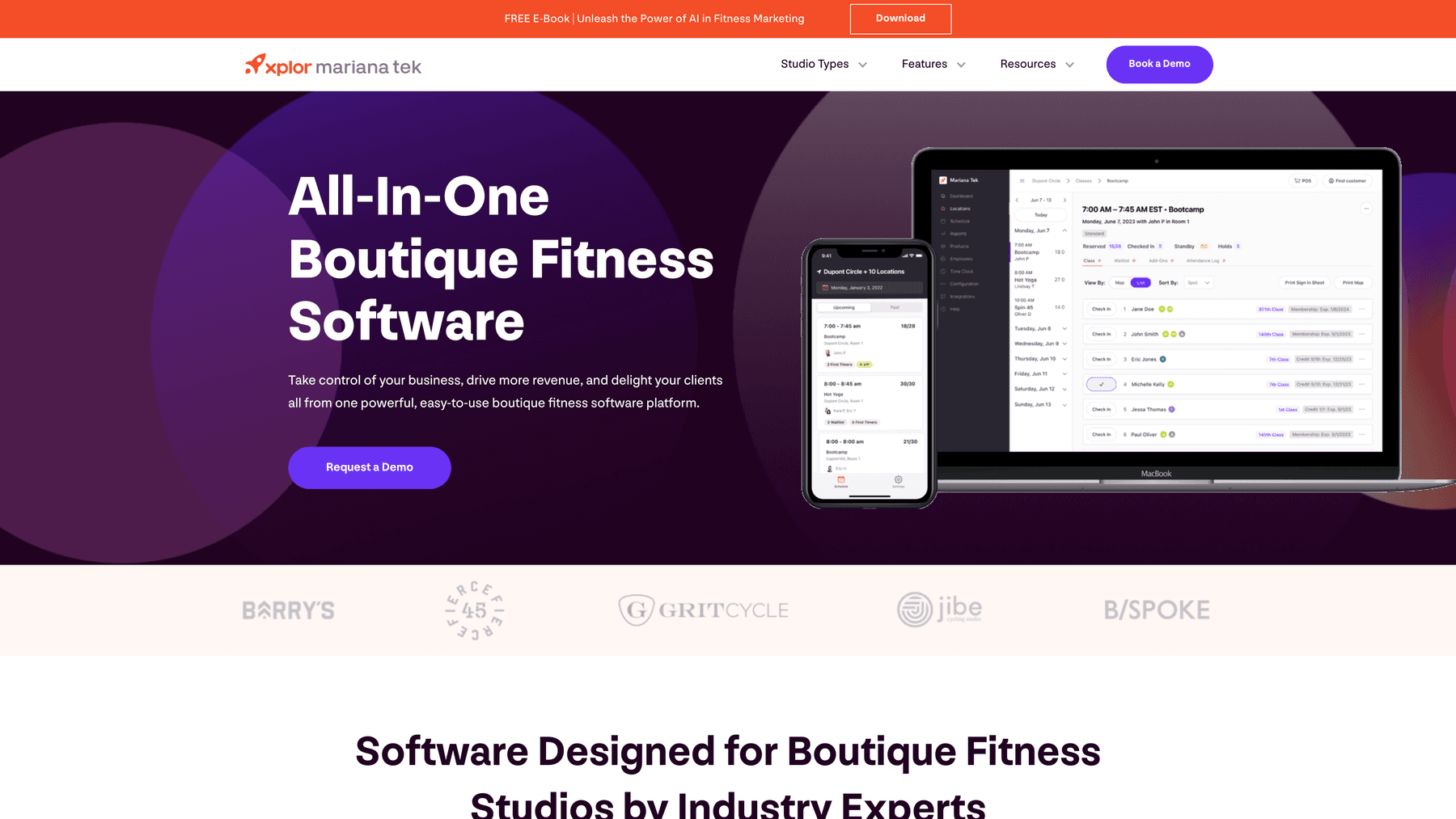 Exercise.com vs Mariana Tek: with adequate boutique gym CRM software, Mariana Tek works well for certain gyms, but top tier gyms who want to succeed online and in-person, and deliver all varieties of workouts at scale, send fitness assessments, and use powerful gym booking and billing automations are all things that you can get with Exercise.com, so you can run your entire business in one place.