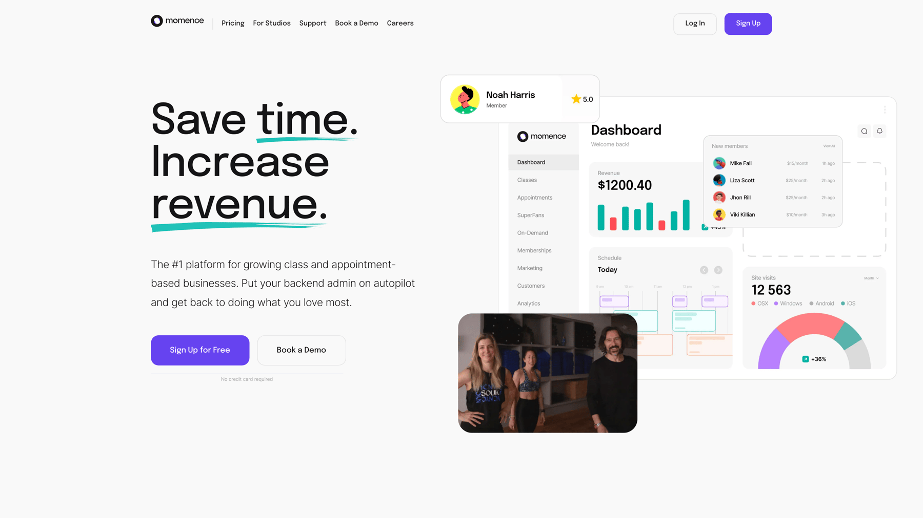 Exercise.com vs Momence: with adequate scheduling software, Momence works well for certain gyms, but top tier gyms who want to succeed online and in-person, and deliver all varieties of workouts at scale, send fitness assessments, and use powerful gym booking and billing automations are all things that you can get with Exercise.com, so you can run your entire business in one place.