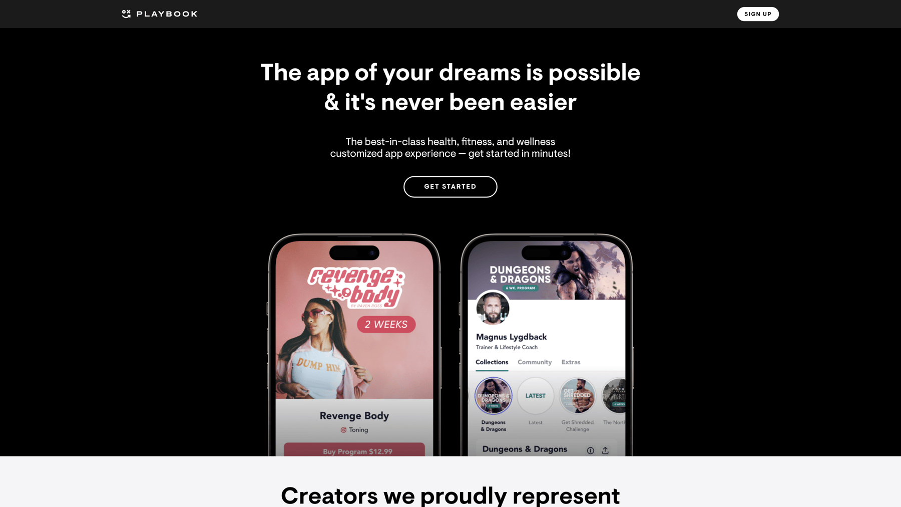 Playbook is a software solution aimed at fitness influencers and businesses, enabling them to create custom-branded fitness apps.