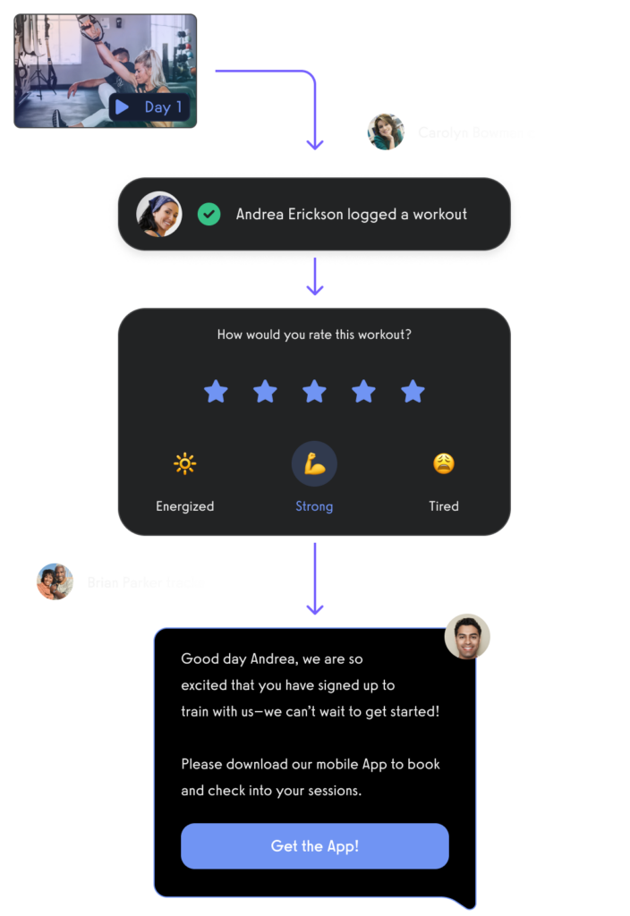 Create segmented lists based on customer behavior so that you can send more personalized messages. Segment by factors like the customer’s training goals (e.g., strength building vs.