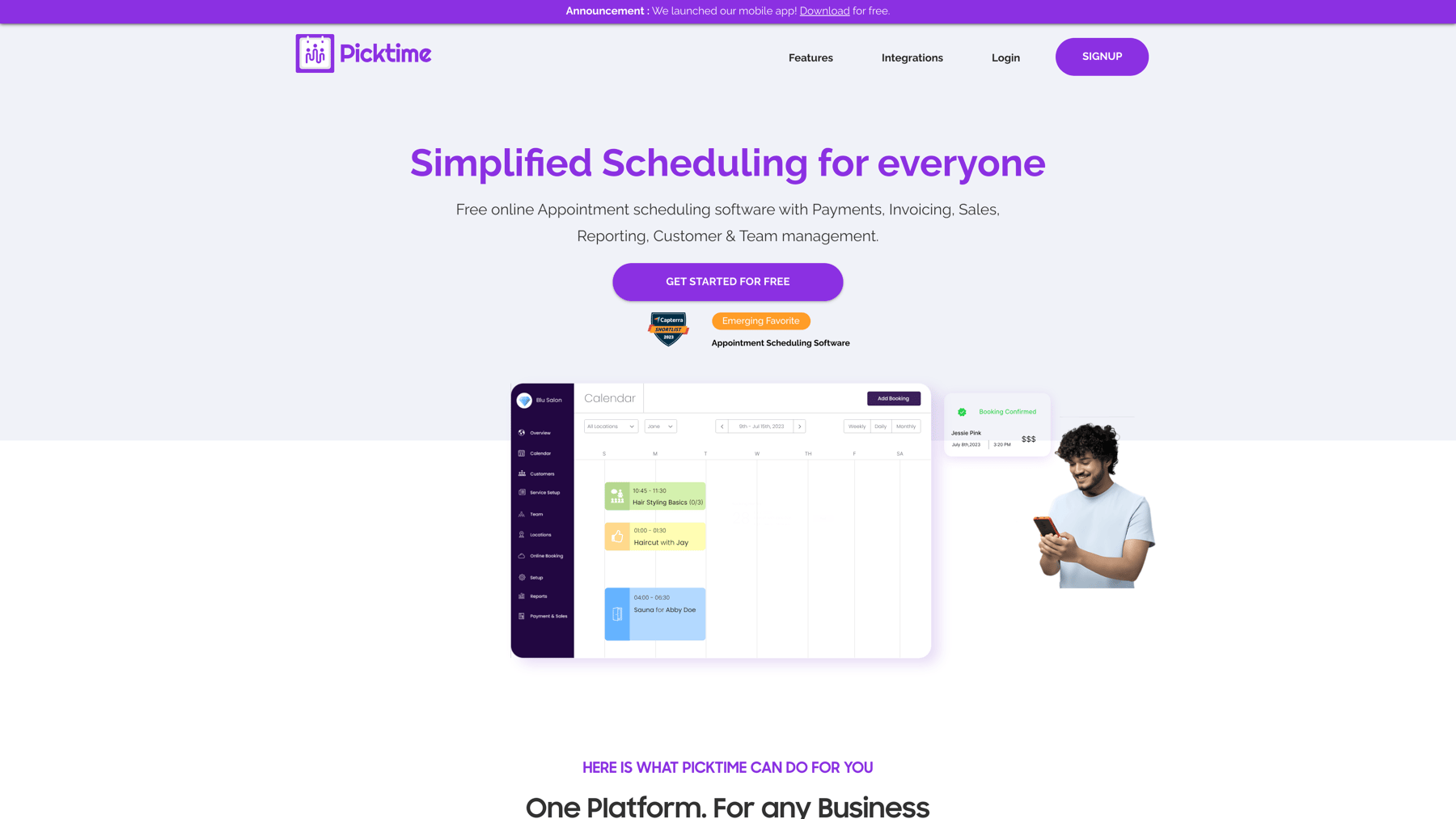 The good news, for potential customers, is that Picktime is free to use and may be the best free scheduling software for those only looking for reservation scheduling software. There are no monthly subscriptions or surcharges. There is no Picktime demo.