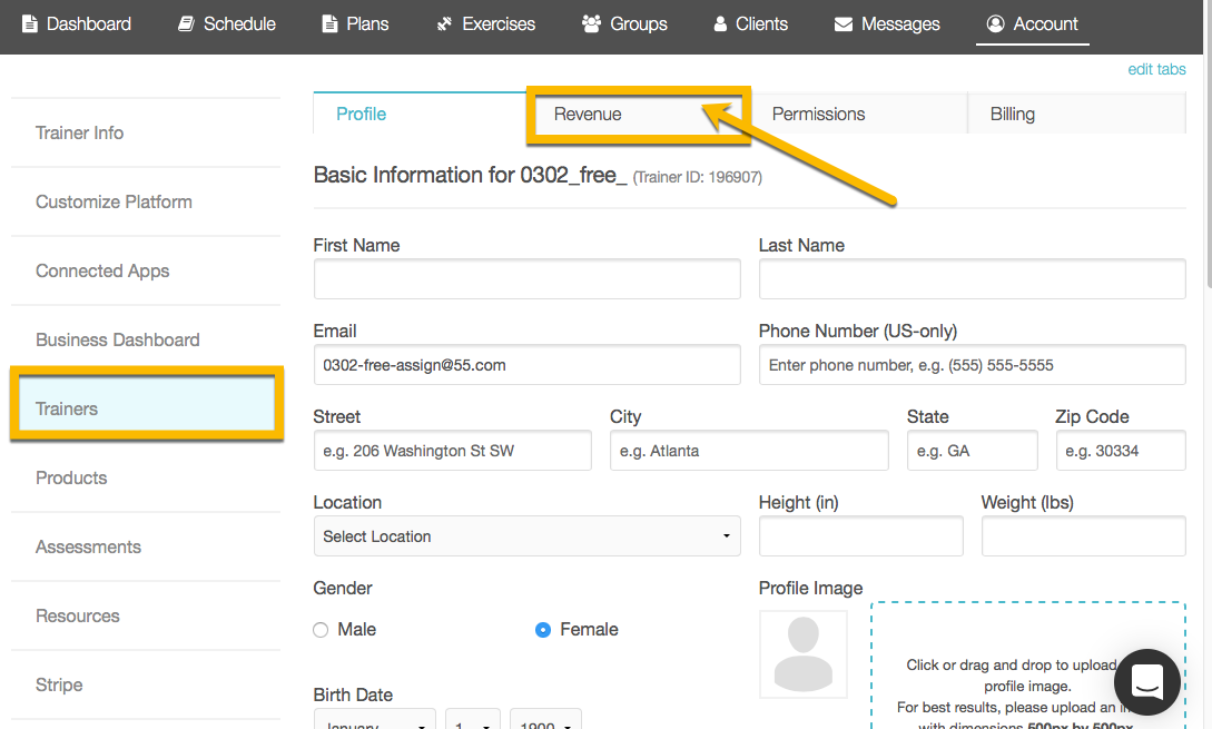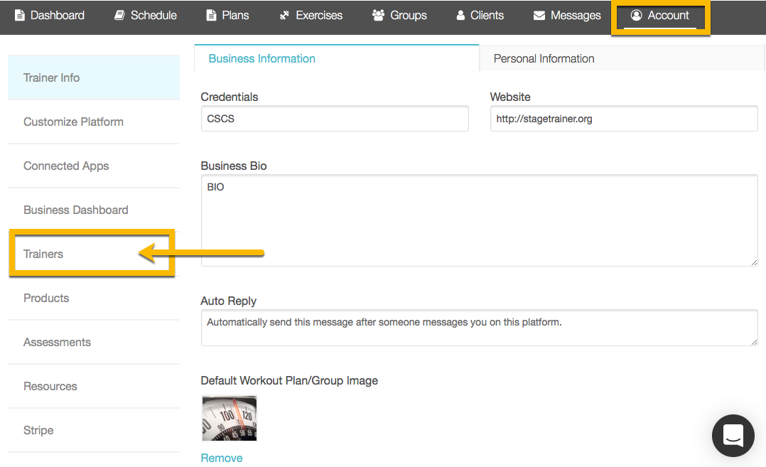 Here’s how to add coupons to individual trainer links to apply discounts automatically, starting from the “Account” tab of your Dashboard. Step-by-step instructions are below: