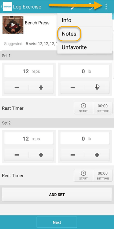 Your exercise notes will be saved once you log the workout: