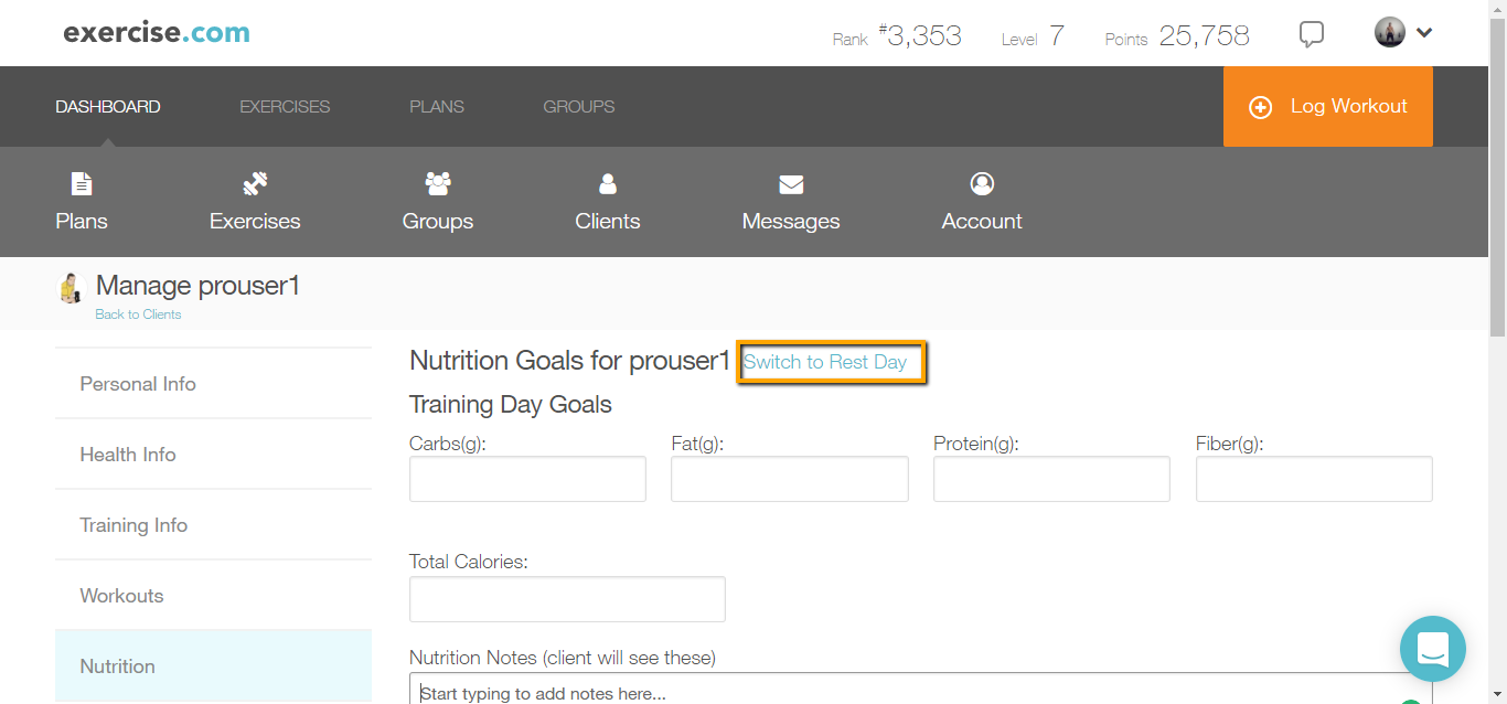 Select “Switch to Rest Day” and add your nutrition plans.