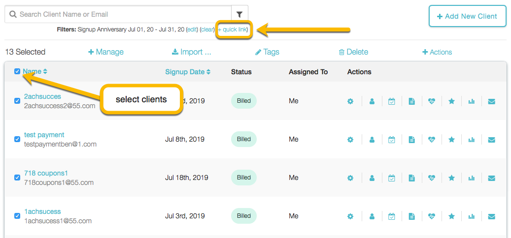 Here’s how to add client quick links to the dashboard, starting from the “Clients” tab of your Dashboard. Step-by-step instructions are below: