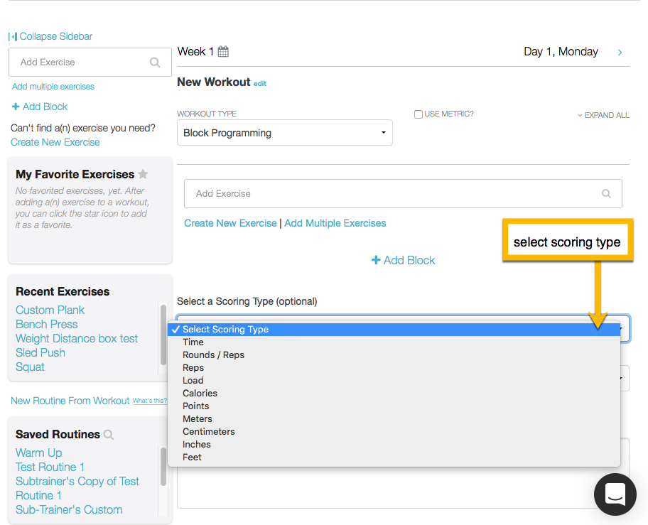 Here’s how to add scoring to a workout, starting from the “Plans” tab of your Dashboard. Step-by-step instructions are below: