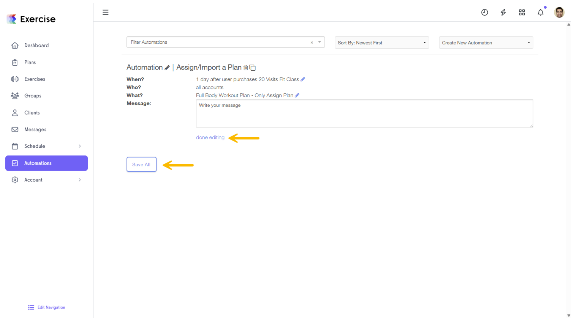 After setting up your automation, you may also choose to add a custom message. Then, click “done editing”, followed by the “Save” button.