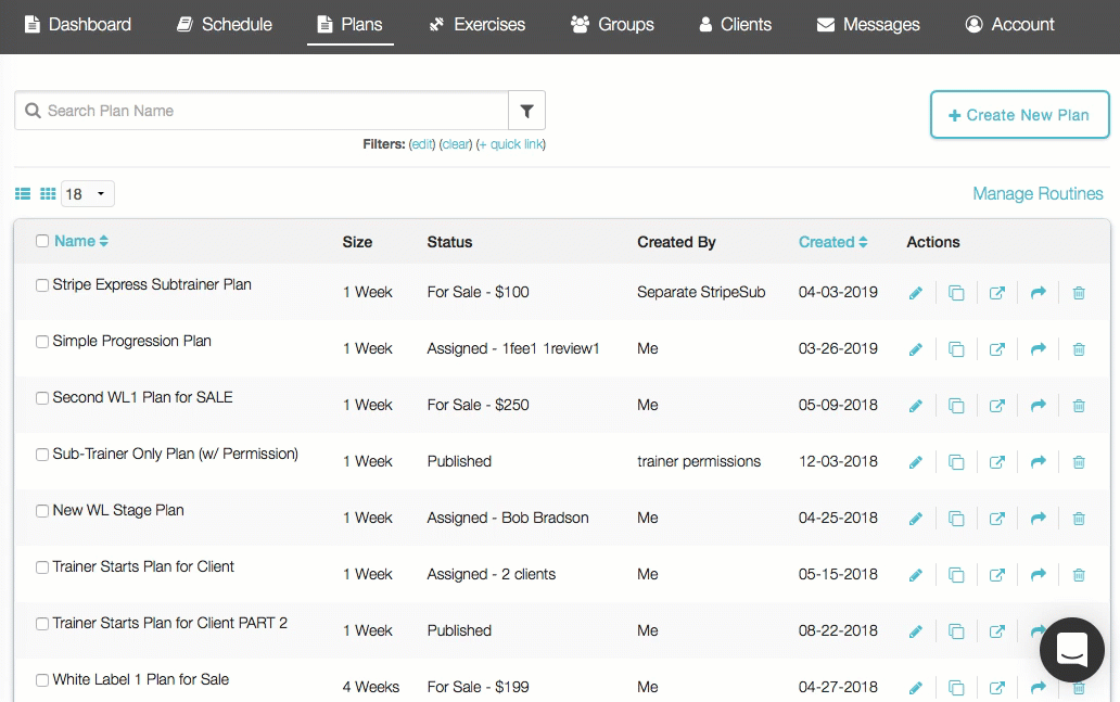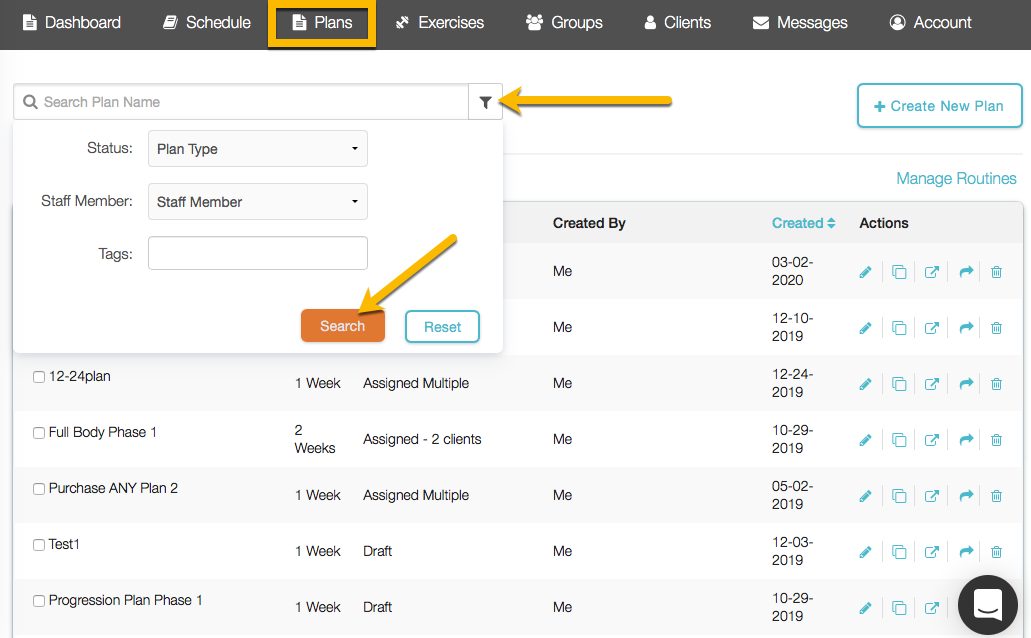 You can search for Plan Names, Plan Types, Staff Members and Tags. Click on the “Search” Button to continue.