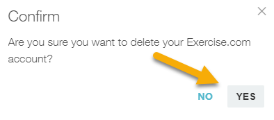 NOTE: Once confirmed, your Exercise.com account will be deleted. You will no longer have access to your account, including any purchases.