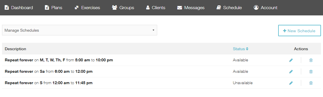 This screen allows you to set your regular business hours, as well as any times that you want to set as “Unavailable”.