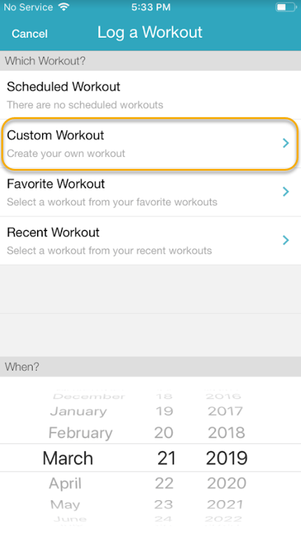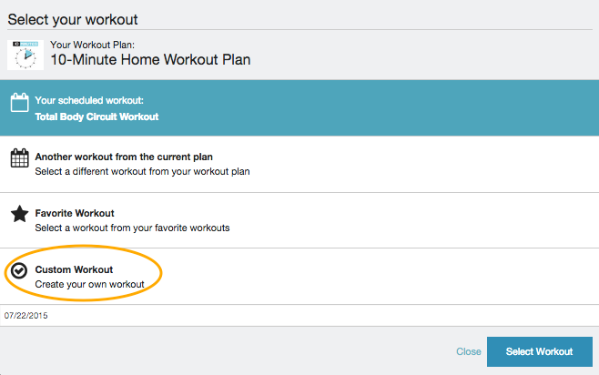 If you’re following a workout plan, but you want to log a workout that is not your current plan, simply log a custom workout.