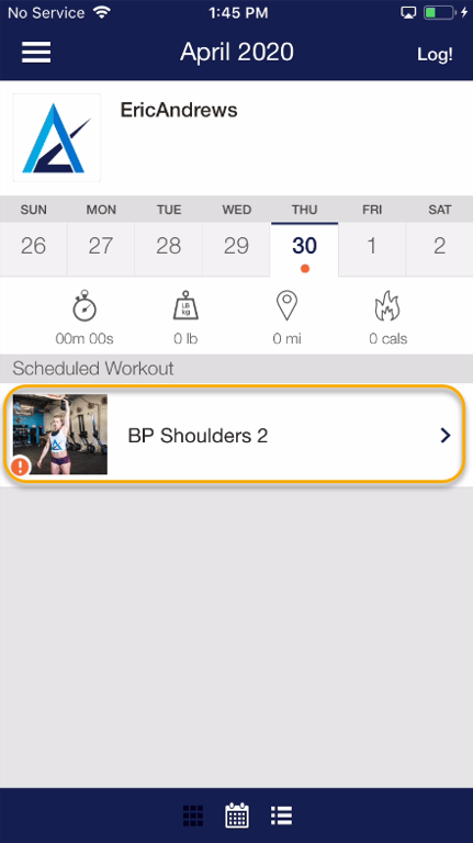 Step 2: Click the “Log this Workout” button for your scheduled workout.