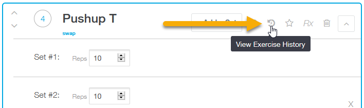 Step 4b: Click the history icon to see what you’ve logged previously for a given exercise.
