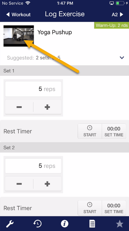 Step 4b: Tap the play icon to see the exercise demonstration video.