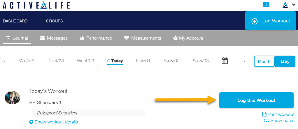 The following steps will guide you through logging your scheduled Active Life RX workouts. We’ll start with instructions for the web platform.
