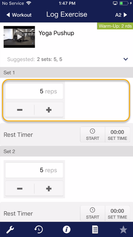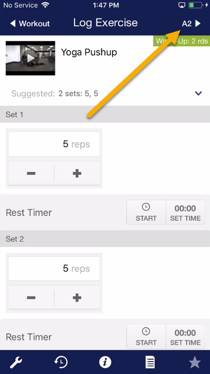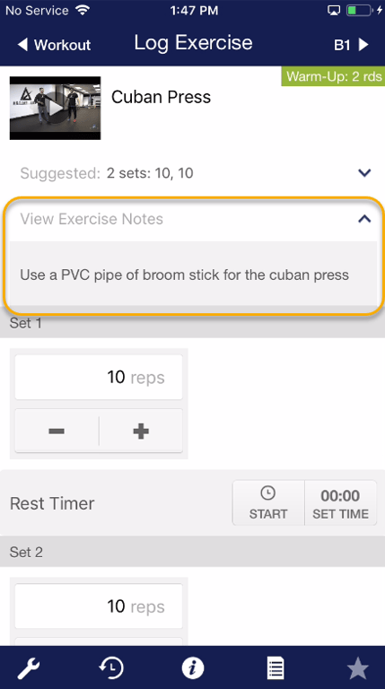 Step 4d: Tap “View Exercise Notes” to see any specific instructions for this exercise.