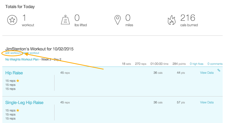 Below the workout’s title, click the “edit workout” link.