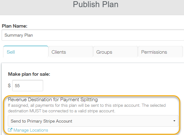If a Workout Plan has a location assigned under Payment settings, payments will go to that location’s account. Otherwise, group payments will be routed to the primary Stripe account for the platform.