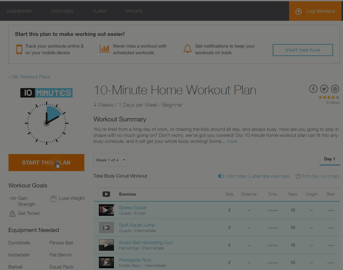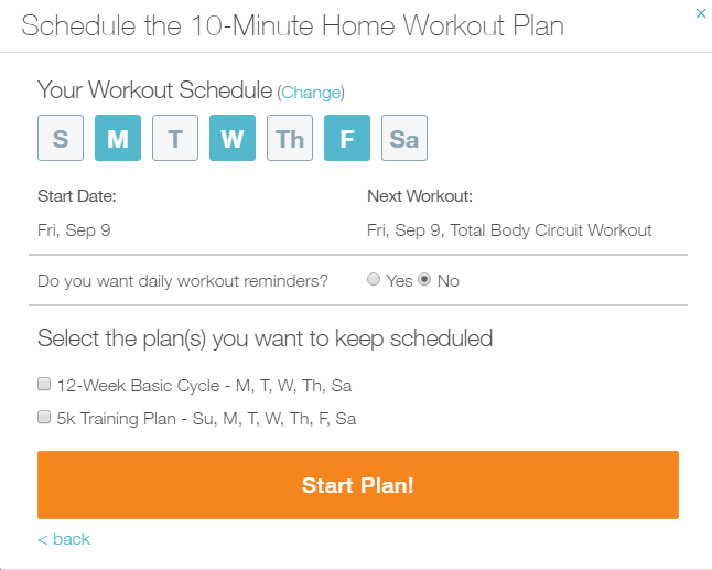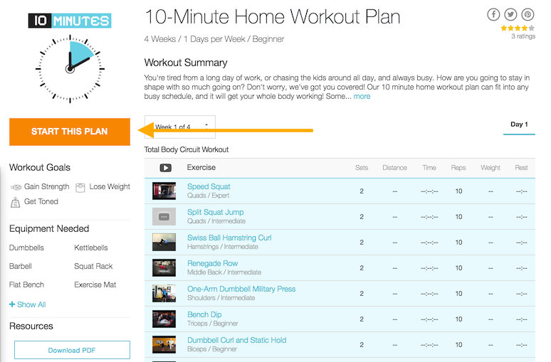 Once you find a workout plan that you would like to follow, click on the workout plan and select “Start this Plan” on the left side of the workout plan’s webpage.
