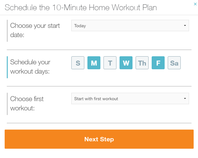 A pop-up window will ask you to choose your workout days. Certain days will be recommended, but you can make adjustments to create a custom schedule.