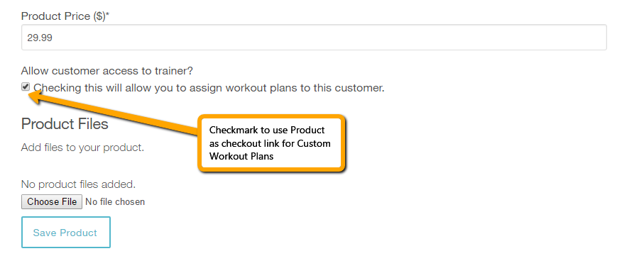 NOTE: Be sure the Product has been check marked to assign to be able to assign workout plans to customers.