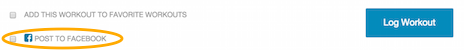 Before clicking “Log Workout” at the bottom of the workout logger, select the “Post to Facebook” option.