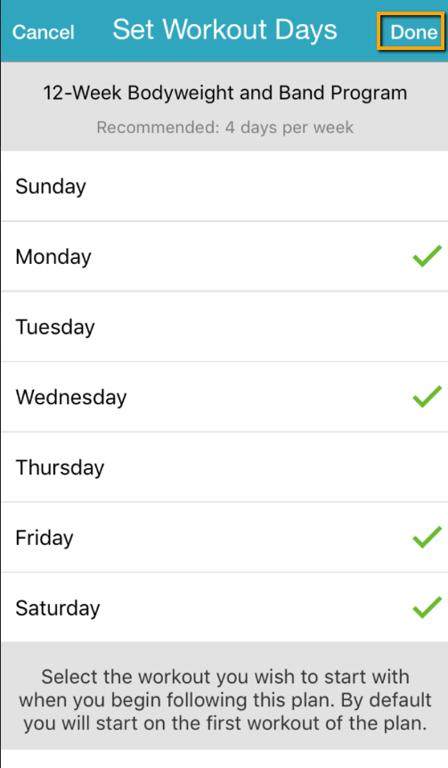 When you have finished scheduling the workout plan, tap “Done.”