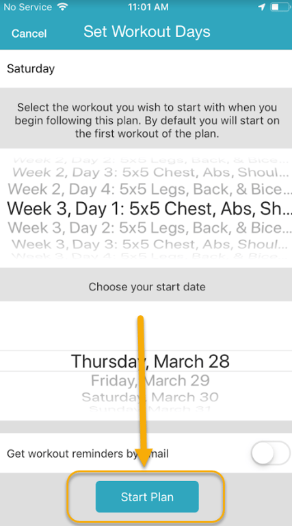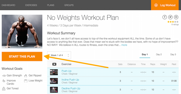 Then, when you are ready to log a workout, your plan will begin with whichever workout you chose!