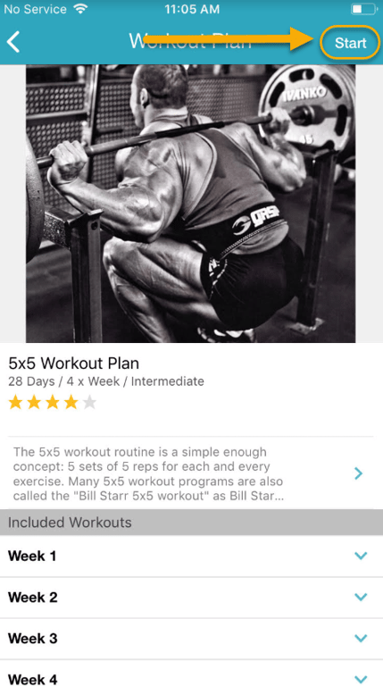 To start a workout plan with a workout other than the first workout of the plan (which is default), begin by locating a plan that you wish to follow.