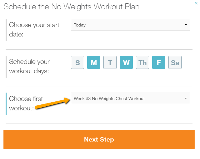 From the list, choose the workout that you want to start with. Then select “Next Step ” to customize the other details, such as workout schedule and workout reminders.
