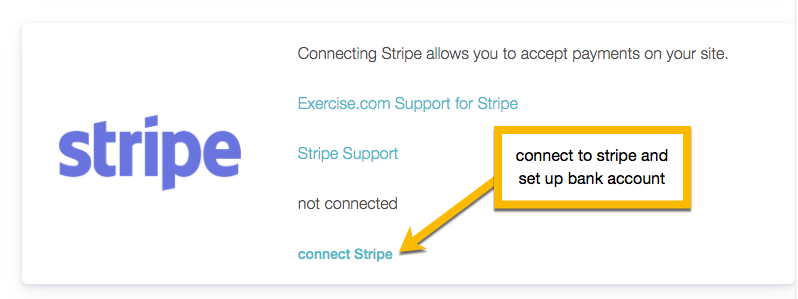 If the trainer already has a Stripe account, they will have the ability to connect it to their Exercise.com account