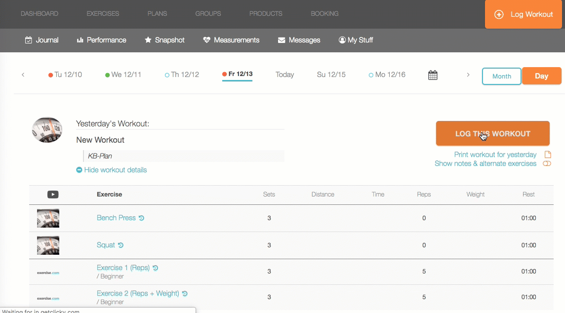 Here’s how to upload a video when logging a workout, starting from the “Journal” tab of your Dashboard. Step-by-step instructions are below: