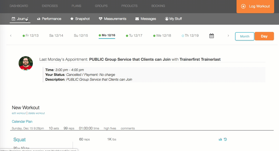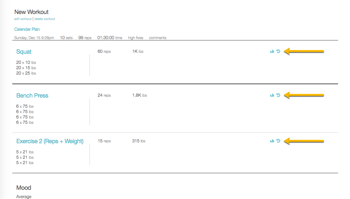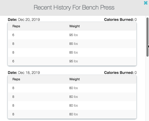 Using our Workout Software, you’re able to view your exercise history from the Journal page.