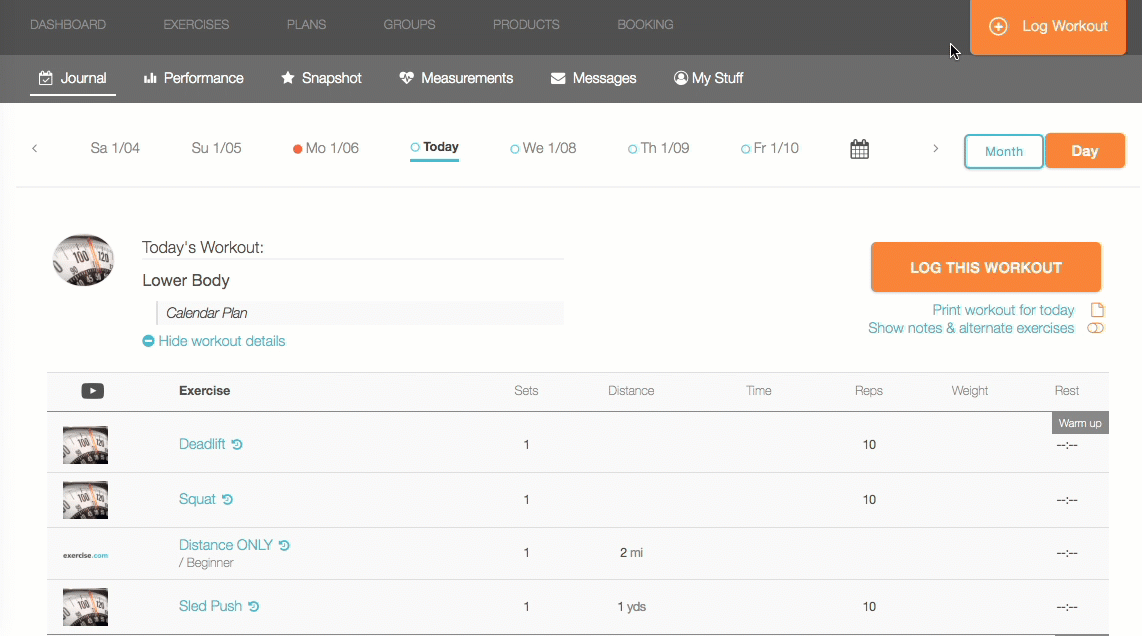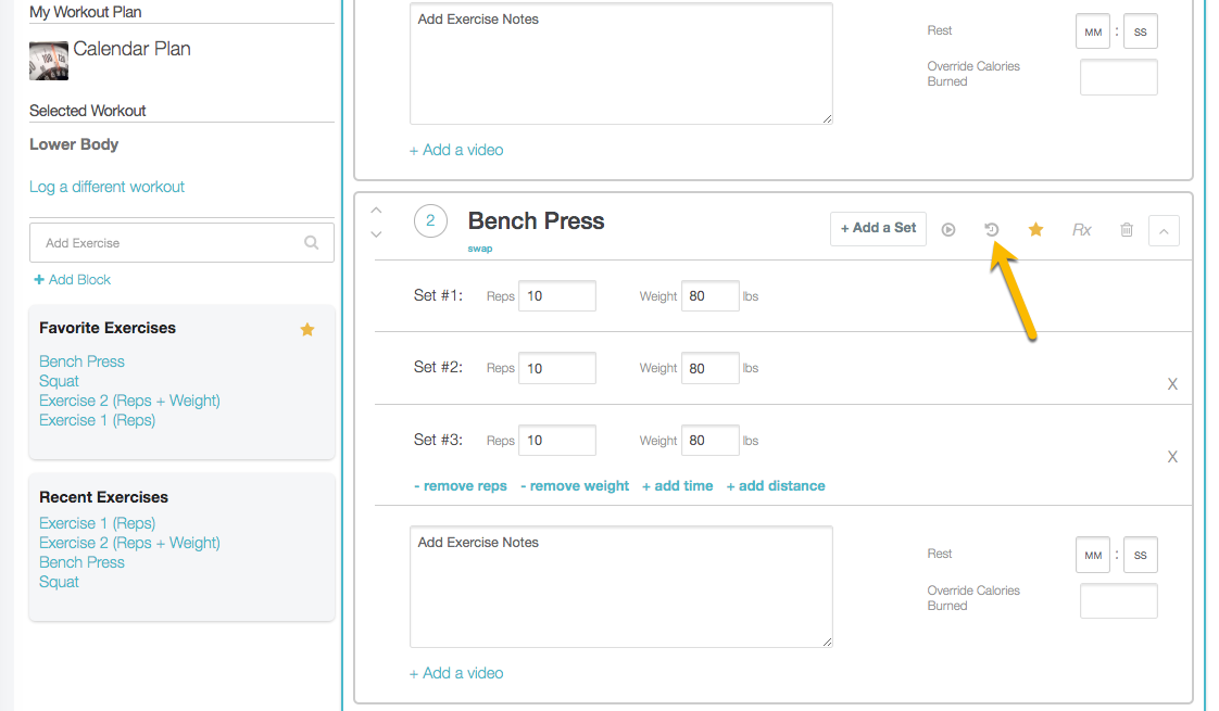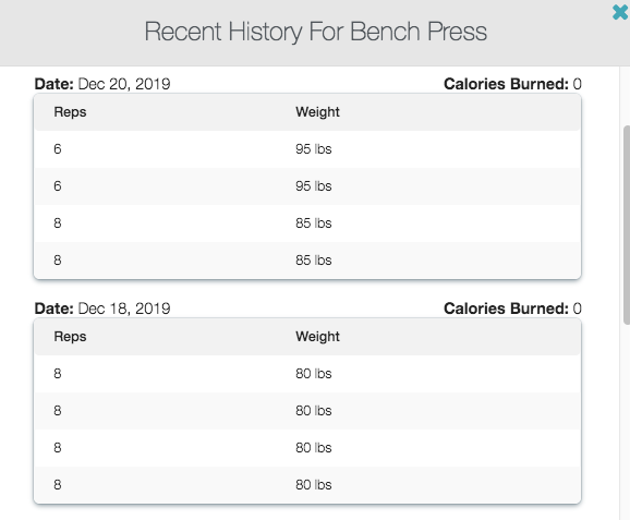 Using our Workout Software, you’re able to view your exercise history from the web workout logger.