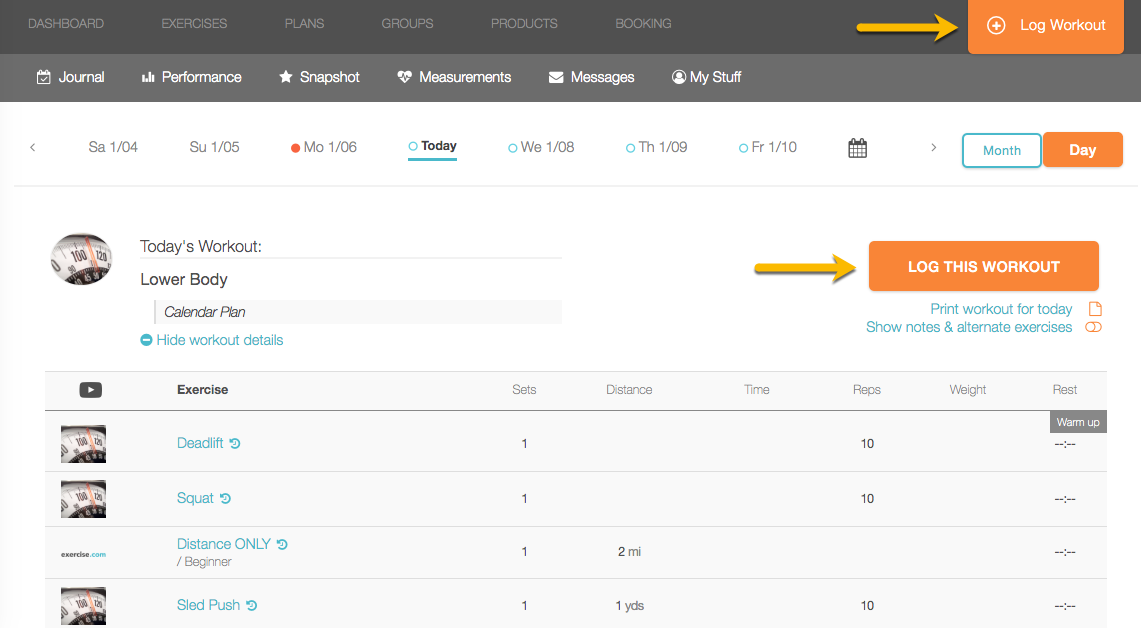 Here’s how to view your exercise history from the web workout logger, starting from your Dashboard. Step-by-step instructions are below: