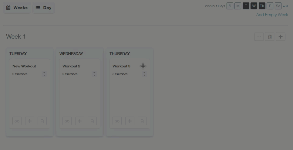 Here’s how to change your workout titles, starting from the “Weeks View” of the Workout Plan Creator. Step-by-step instructions are below.