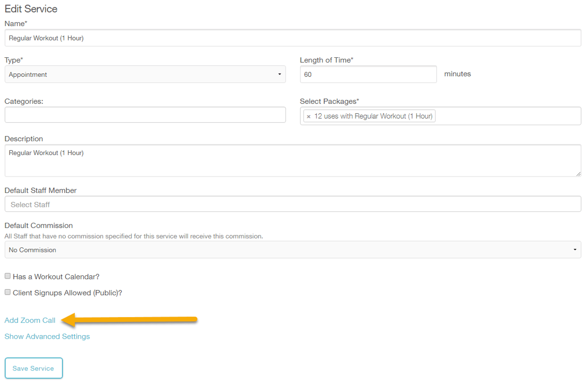 You can add default Zoom settings at the service level to automatically add a Zoom meeting to any appointment booked of that service type.