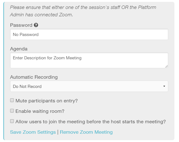 Automatic Recording: You can choose to enable / disable automatic recording of the Zoom meeting. If enabled, your Zoom meeting will be recorded and saved to your device.